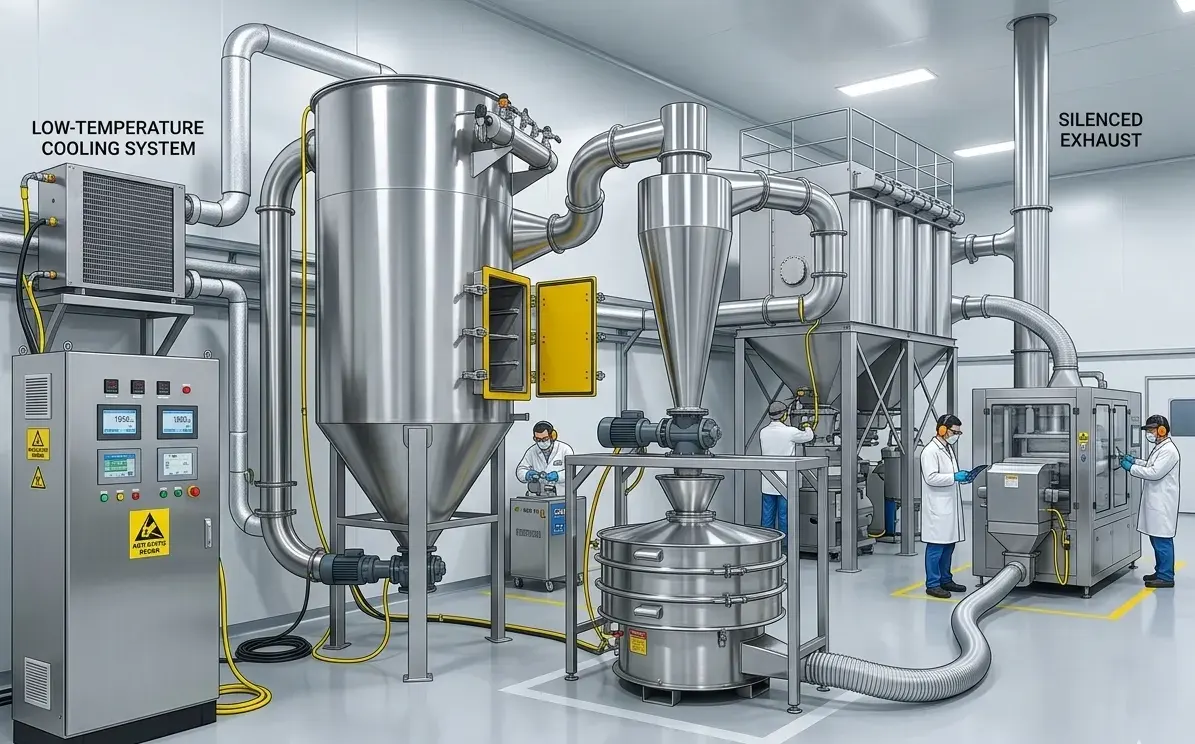 Angesichts immer strengerer globaler Umweltvorschriften hält Xingshengwei mit den Entwicklungstrends der Branche Schritt und integriert Umweltsicherheitskonzepte in den gesamten Forschungs- und Entwicklungsprozess für Geräte. Das Design des Pestizid-Superfeinpulverisierers entspricht den EPA-, CE- und ISO 9001-Standards und erfüllt damit in vollem Umfang nationale und internationale Umweltauflagen. Sein geschlossenes Unterdrucksystem kann das Austreten von Staub verhindern, die Gesundheit der Arbeitnehmer schützen und die Umweltverschmutzung verringern. Die Ausrüstung ist außerdem mit einem antistatischen Design ausgestattet, das der statischen Elektrizität standhält, die beim Zerkleinern von Pestiziden entsteht, und so einen sicheren Betrieb auch beim Umgang mit brennbaren oder giftigen Materialien gewährleistet. Für wärmeempfindliche Pestizide bietet Xingshengwei außerdem ein optionales Niedertemperatur-Kühlsystem an, um die Zersetzung der Wirkstoffe zu verhindern, was die Servicephilosophie von Xingshengwei „Kunde zuerst, Sicherheit zuerst“ voll und ganz widerspiegelt.