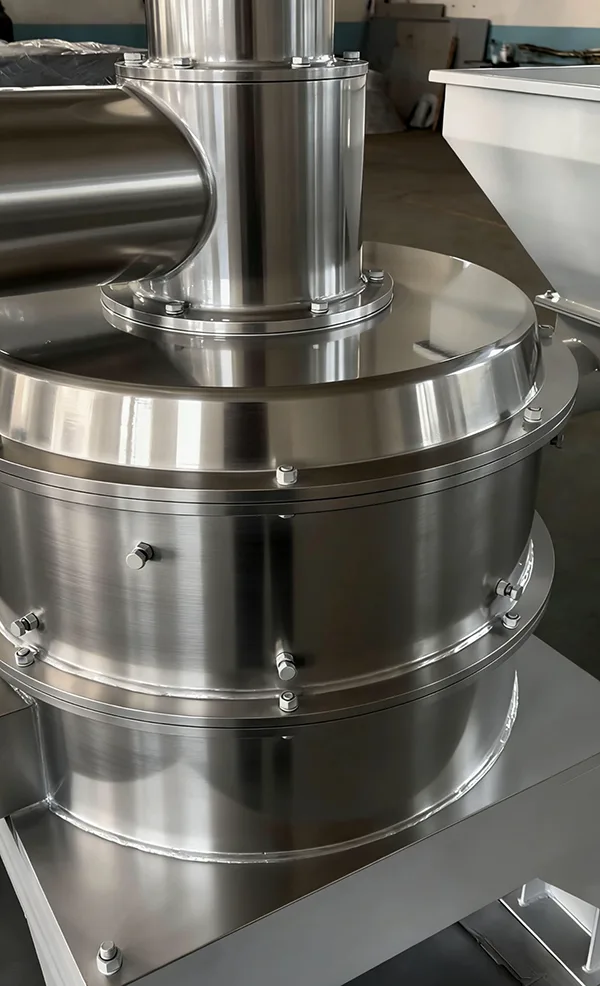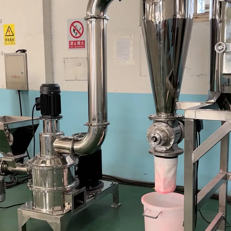 Der Ultrafine Pulverizer für ultrahartes Material verwendet keine Siebe oder Siebe, da diese sofort verschleißen oder verstopfen würden. Stattdessen trennt ein internes Windsichterrad das Pulver. Sie können die Partikelgröße anpassen, indem Sie die Drehzahl des Sichtermotors über einen Frequenzumrichter ändern. Dies gewährleistet eine enge Partikelgrößenverteilung für hochwertige Materialien.