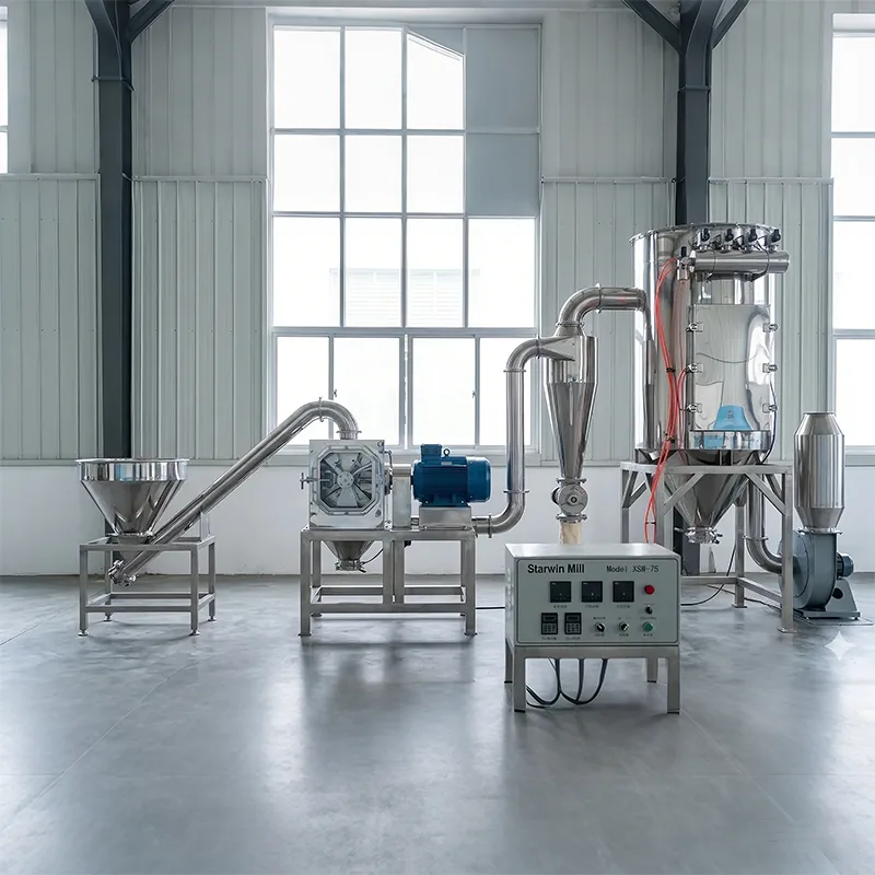 Der Gemüse-Ultrafeinpulverisierer ist eine mechanische Hochgeschwindigkeits-Prallmühle, die von Qingdao Xingshengwei Machinery Co., Ltd. speziell für die Lebensmittelindustrie entwickelt wurde. Dieses System ist für die Verarbeitung von dehydriertem Gemüse zu Pulvern mit einer Maschenweite von 100 bis 2500 ausgelegt. Die Starwin Mill-Technologie integriert Mahlung und Luftklassierung in einer Einheit. Es ist ideal für wärmeempfindliche Materialien, da es eine niedrige Betriebstemperatur aufrechterhält. Diese Maschine wird häufig zur Herstellung hochwertiger Pulver aus Grünkohl, Ingwer, Knoblauch, Äpfeln und Beeren eingesetzt.